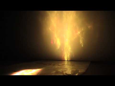 A reinterpretation of the process of recording and projection on celluloid film. A laser projector projects a computer animation onto a plastic bag which is diffracted onto a wall. A 3-part narrative is conveyed through this experimental film language.