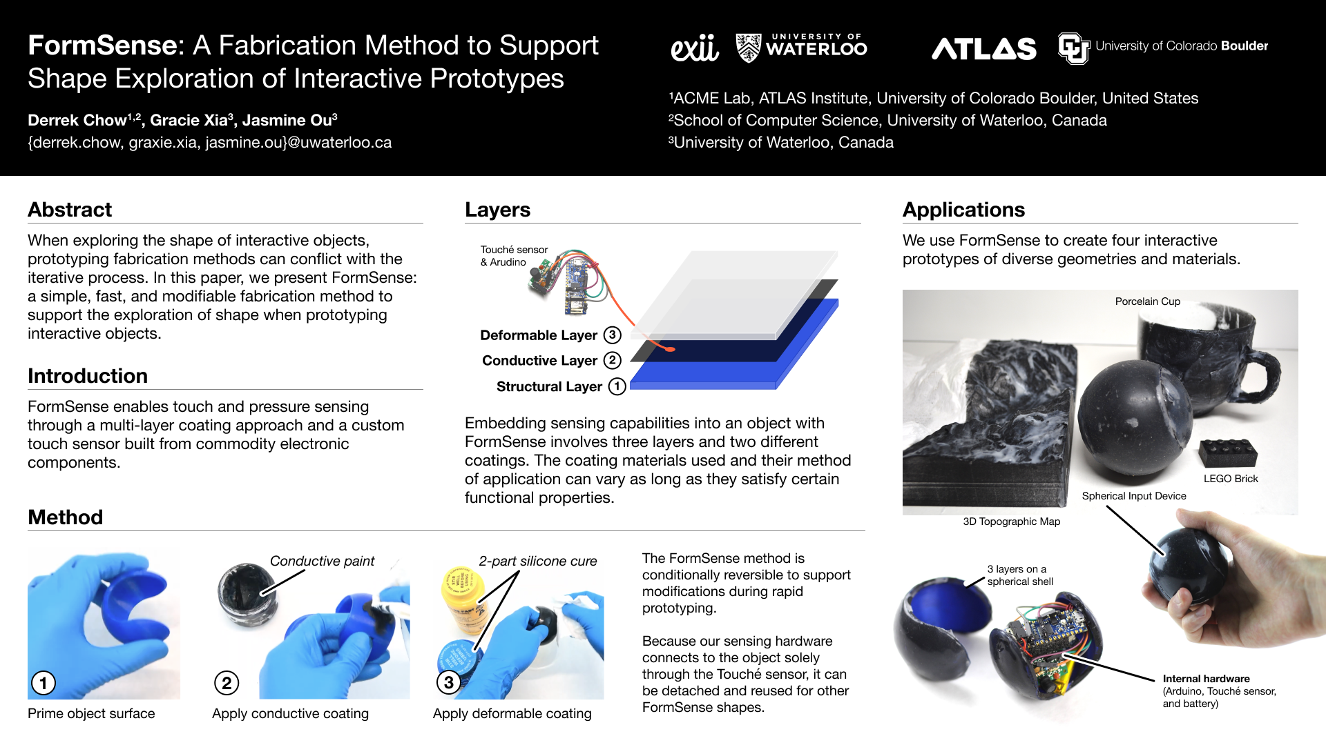Publication Derrek Chow, Gracie Xia, Jasmine Ou. FormSense: A Fabrication Method to Support Shape Exploration of Interactive Prototypes. The ACM Symposium on User Interface Software and Technology (UIST 2022). 3 pages.